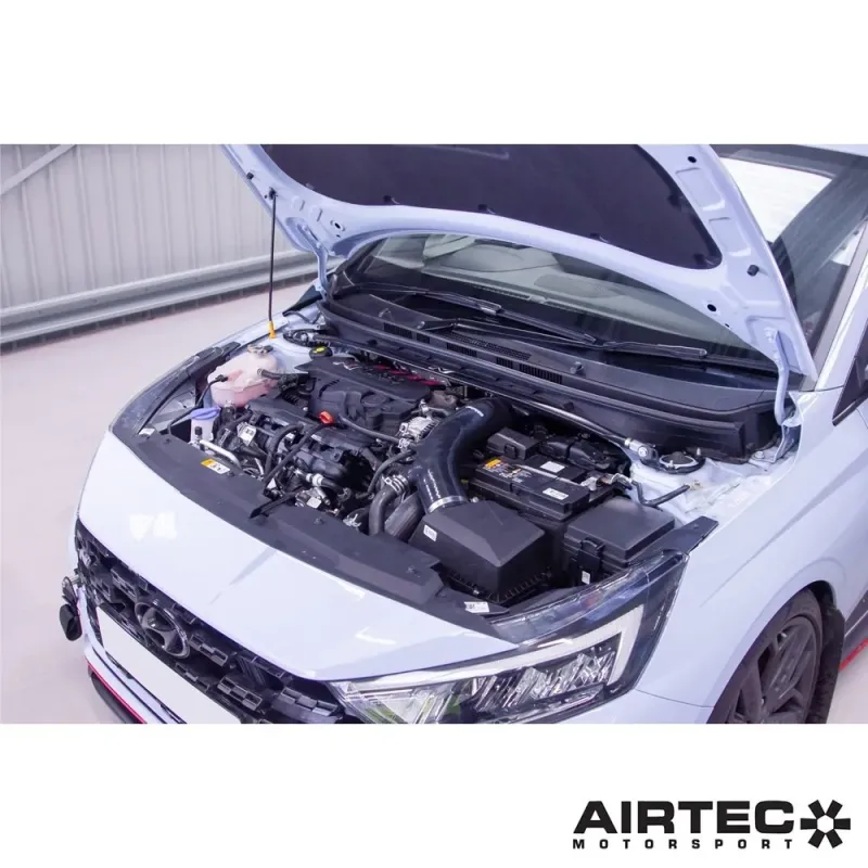 Airtec enlarged intake sleeve + turbo elbow for original Hyundai i20N airbox, perfectly installable Plug & Play allow you to maintain the OEM intake box but completely eliminate the restrictions up to the turbo with a clear improvement in power and torque.