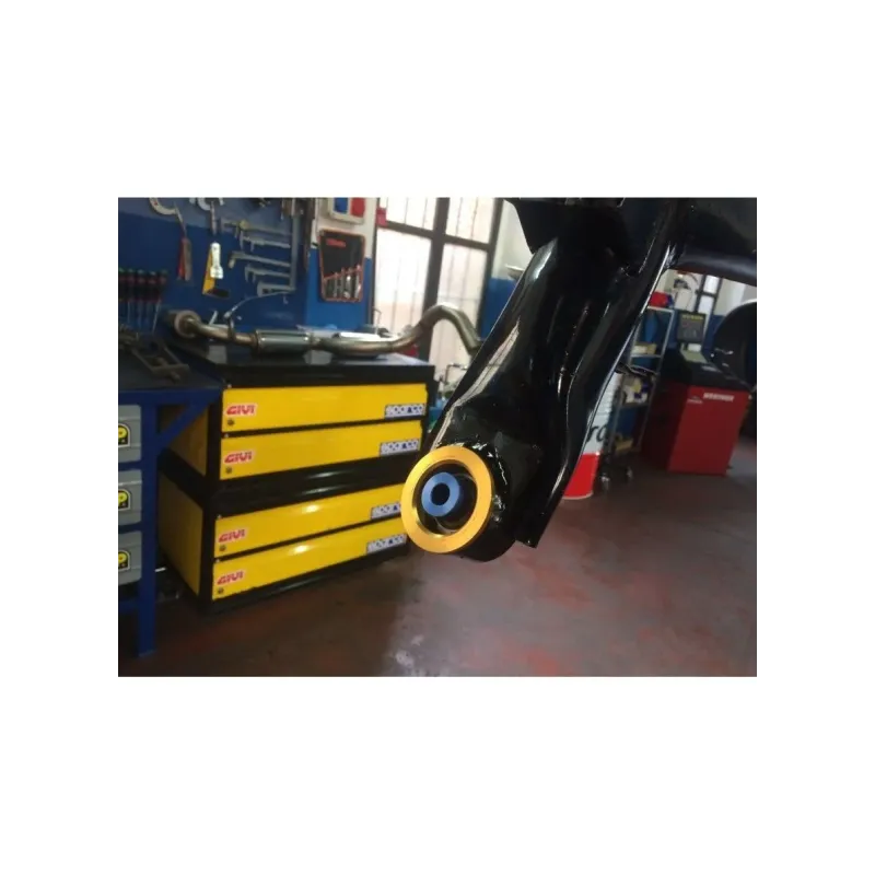 The kit consists of motorspor uniball, their seats and spacers all made of anodized Aluminum and all the necessary components in order to fit the kit. This modification will help precision during braking and when you approach a curve, eliminating any bad movement of the rear axle.
