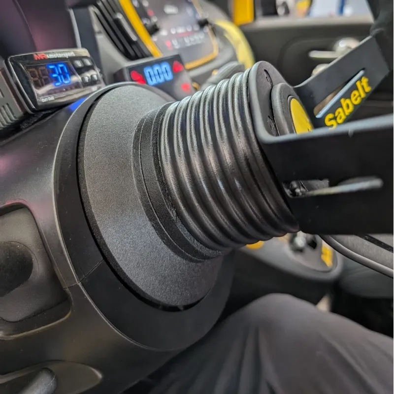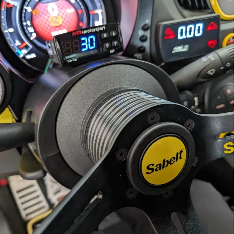 Luisi hub for sports steering wheel installations on Abarth 500 and derivatives.