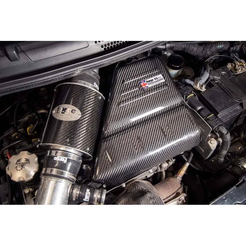 Forge Motorsport carbon fiber engine cover for Abarth 500/595/695, specifically designed to be installed with the direct intake kit with code "FMINDDF500"!