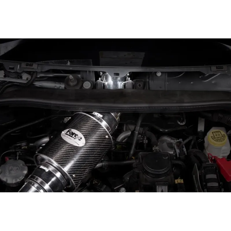 Direct intake kit for Abarth 500/595/695 Forge Motorsport, available with both sponge filter and cotton filter (housed in a carbon fiber cylinder). Silicone hoses available in black, red or blue.