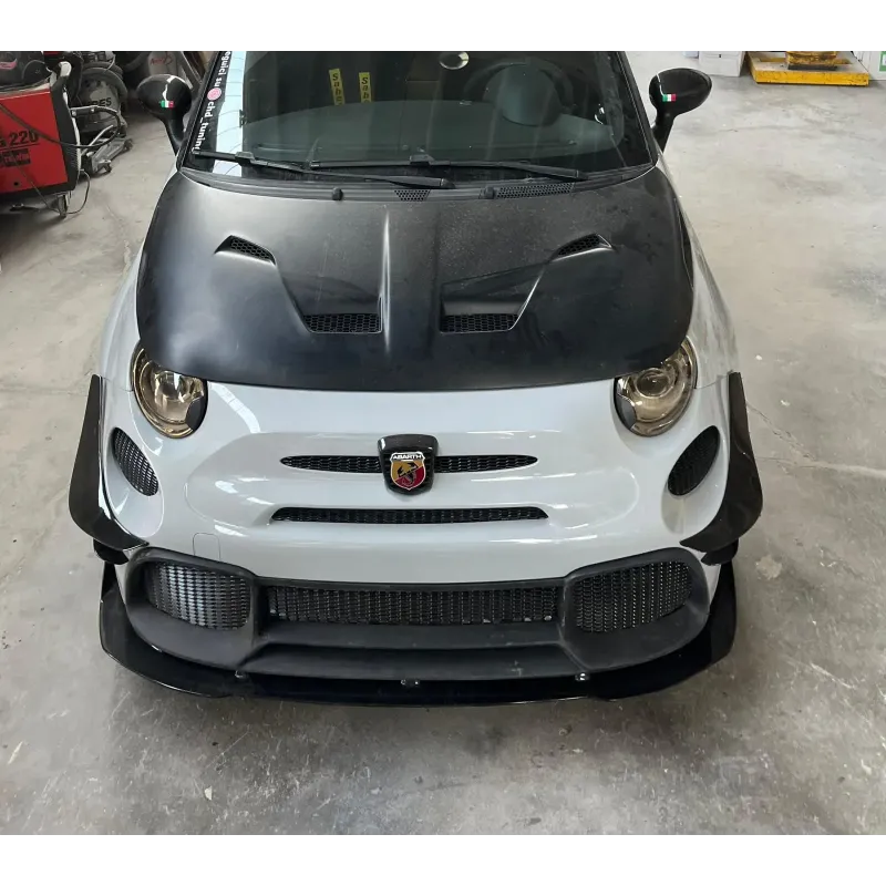 500 Abarth oversized front diffuser, equipped with matt black painted grilles with a plastic effect. Plug and play