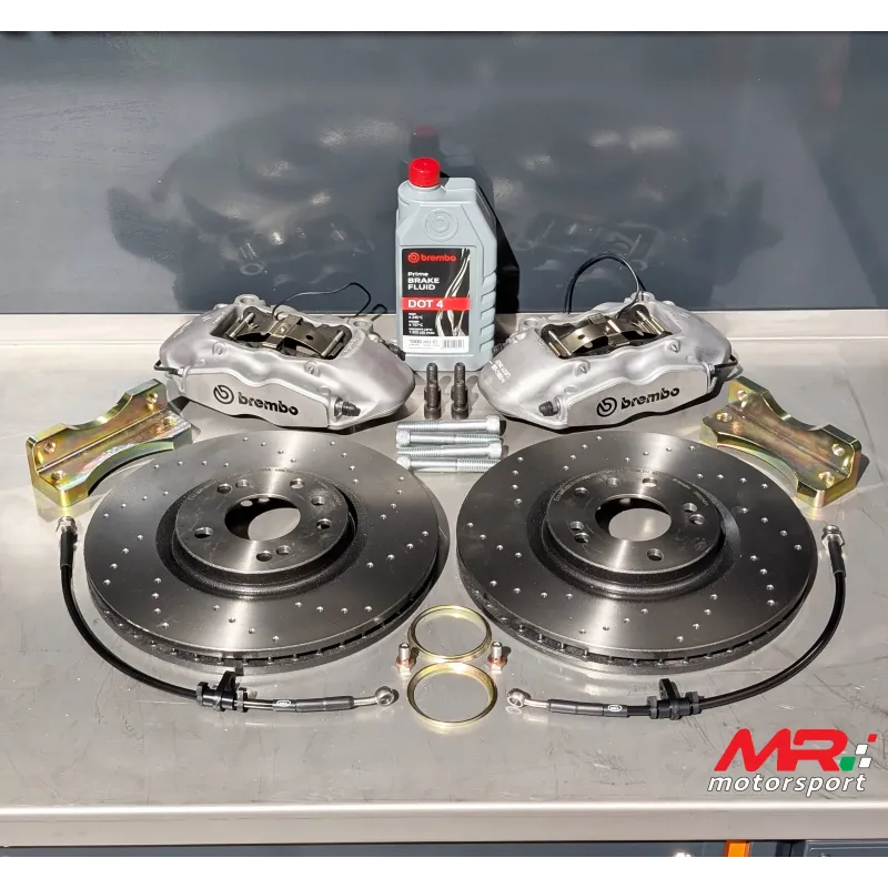 • 320 x 28 mm braking system for Ford focus st mk8 • NEW INCREASED 4-pumping red or gray calipers • Brembo discs, smooth or drilled • Brembo pads • Brackets with complete screws • Brembo dot 4 oil • Braided hoses
