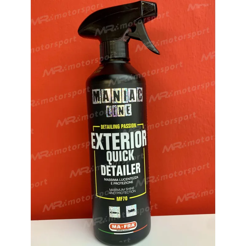 Exterior Quick Detailer di Maniac Line™ è un pulitore a secco professionale di Mafra, ultra-concentrato, sicuro e ad azione lucente.