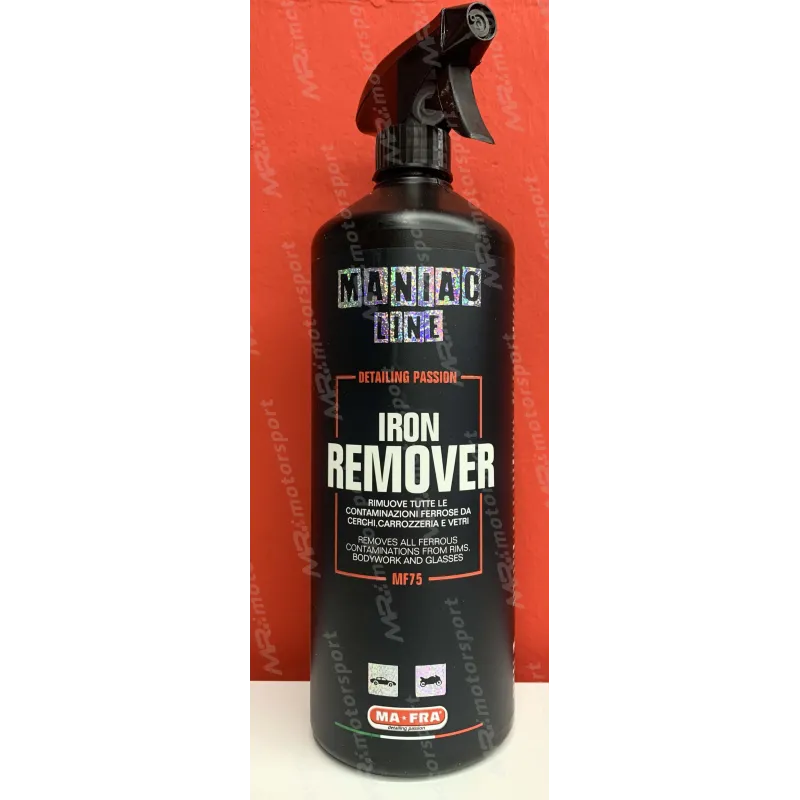 Iron Remover di Maniac Line™ è il prodotto Mafra per rimuovere le contaminazioni che si trovano sui cerchi, sulla carrozzeria e sui vetri dell’auto.