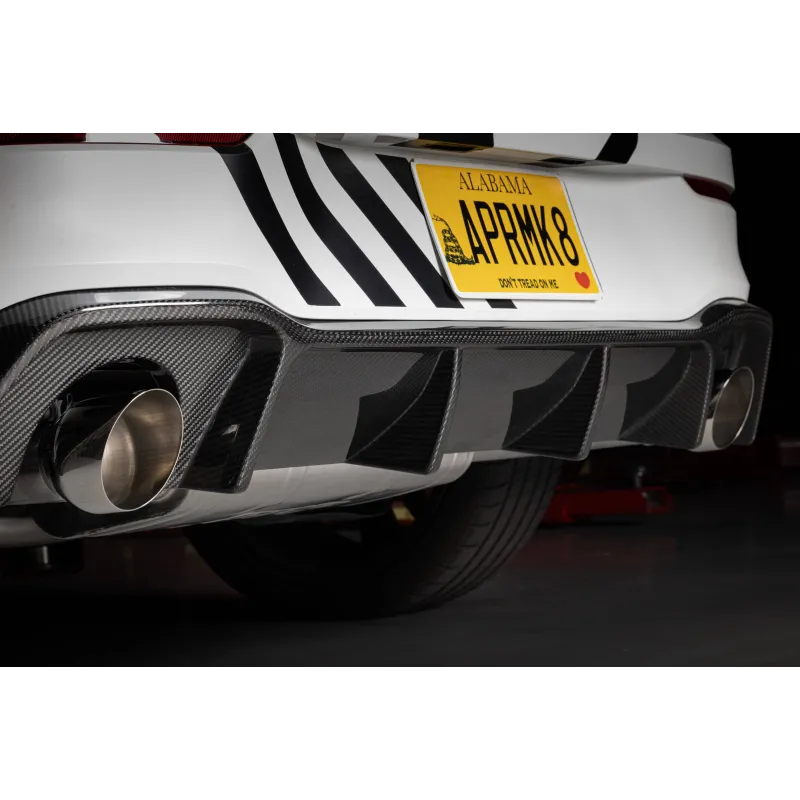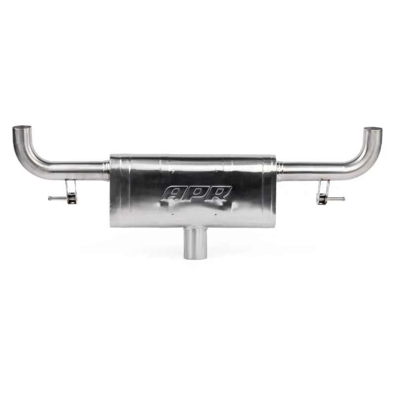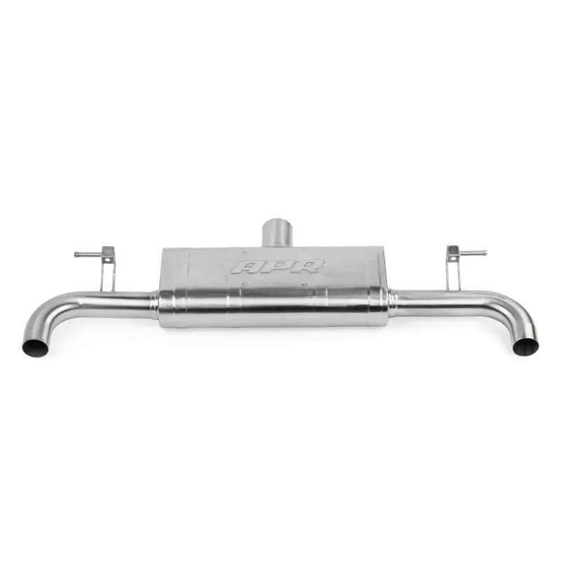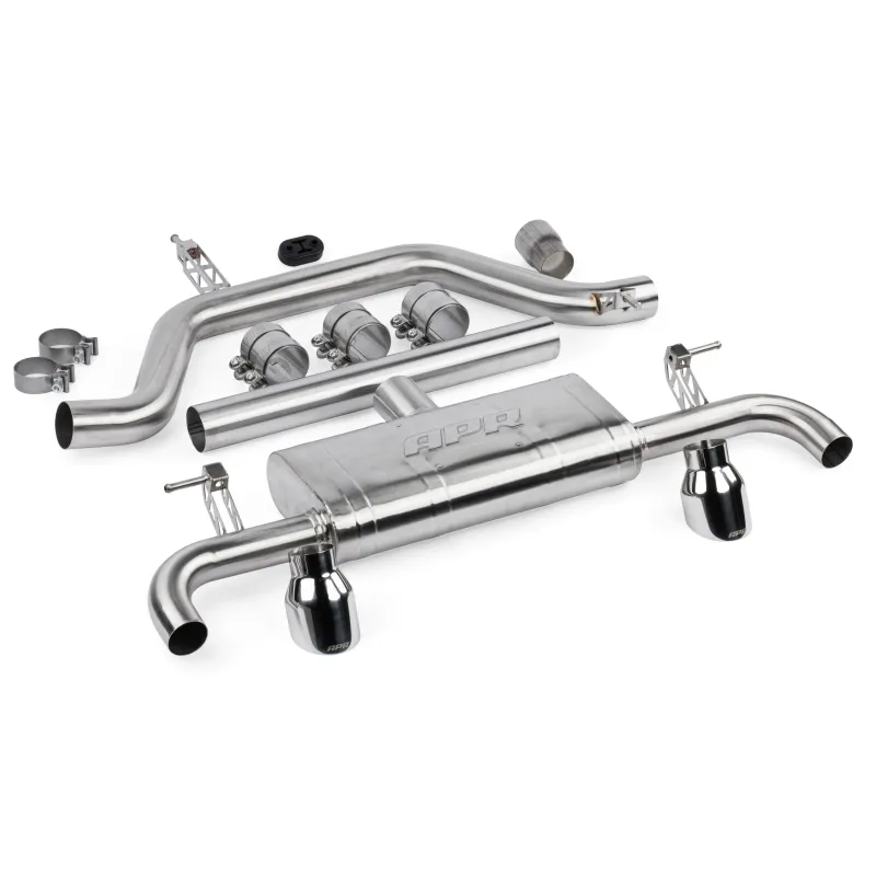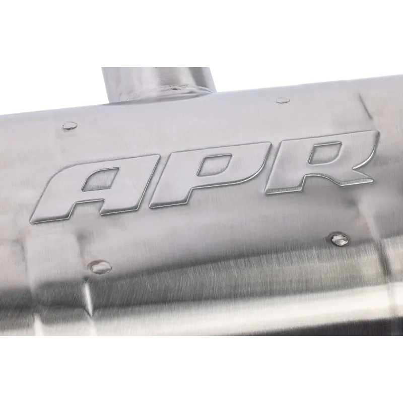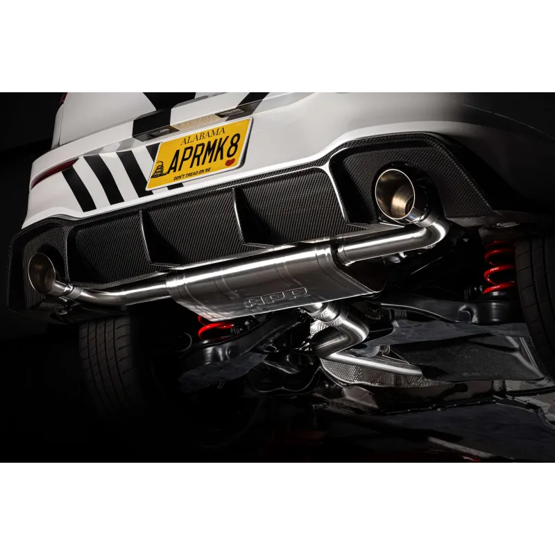 Cat-Back APR specific for Volkswagen Golf mk8 GTI, with an optimized design and low profile (for very low cars) is the definitive Plug & Play exhaust system for those who want an excellent sound leaving the original downpipe from the manufacturer (in combination with aftermarket downpipes there may be the possibility of adaptations for correct installation). With 102mm chromed ends, it is made of mirror-polished T304 steel completely TIG welded, with a 76mm section.