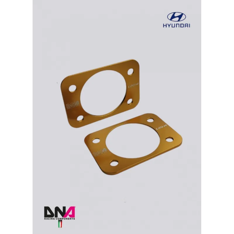 The kit consists in a couple of aluminium gold anodized to an 1.5° angle that need to be fitted between the wheel hub and the rear suspension swing arm.