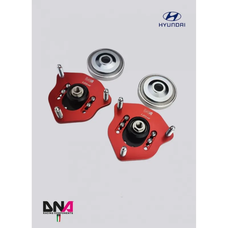 The top mount is a component that is interposed between the shock and the body of the vehicle. In order to improve the steering precision and the structural strength of the system, in particular in the case of rigid springs set up, it is recommended to replace this with a motorsport type one: the replacement of the rubber with a ball joint allows to increase the steering precision and a better functioning of the spring-damper that will not work on rubber any more. Our kit allows you to adjust the camber angle up to around -3 ° too: the increase of this angle will get the best wheel contact to the ground. This will improve the handling, steering response and suspension precision.The kit includes: top spring platforms, adj. camber plates and uniball seats, motorsport uniball and shock nuts.
