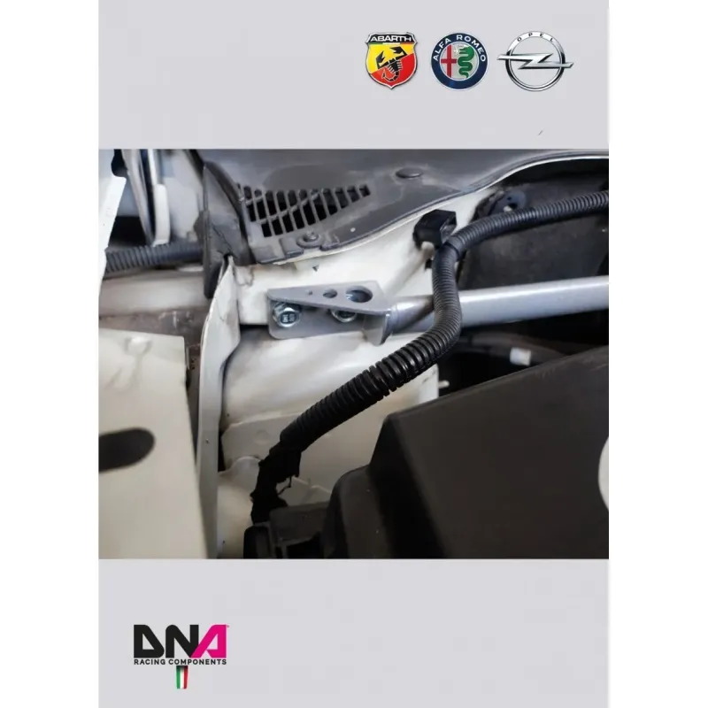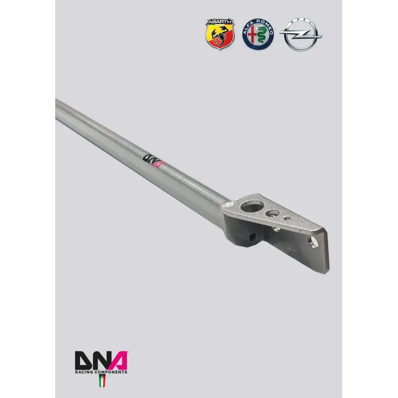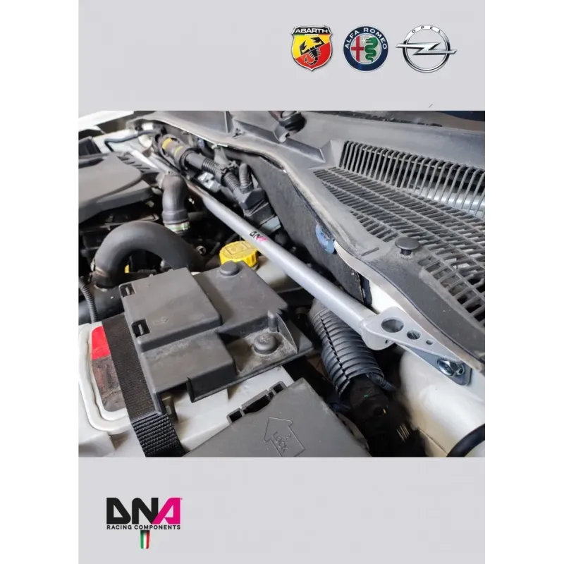 Designed to improve chassis rigidity by tying the two strut towers together with the main chassis.It transmits the load of each strut tower during cornering, tying the two towers together and reducing chassis deformation. The results are a better handling, a more precise steering system and a better suspension characteristic angles control.