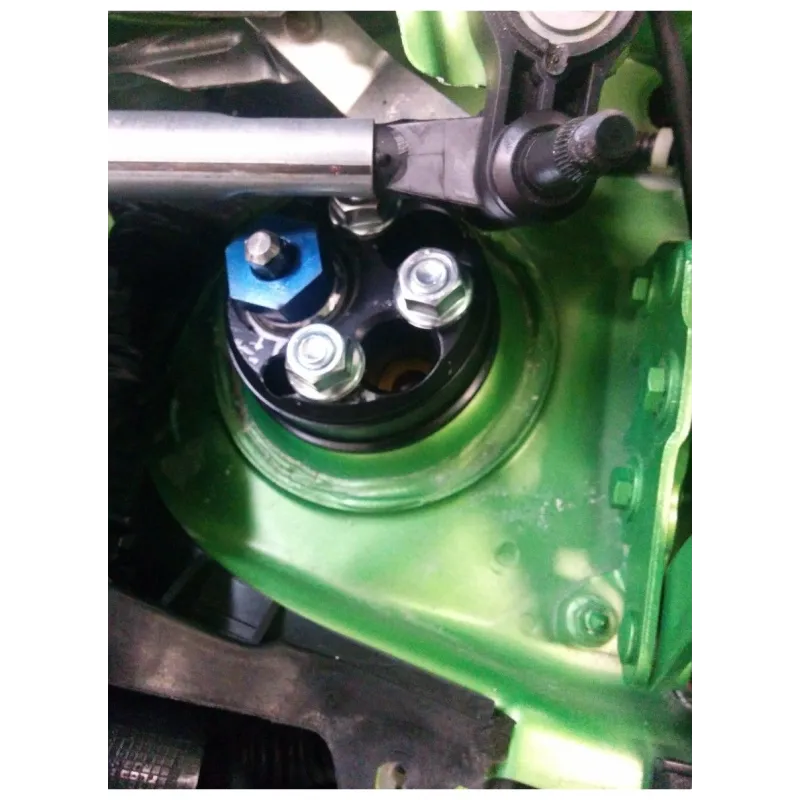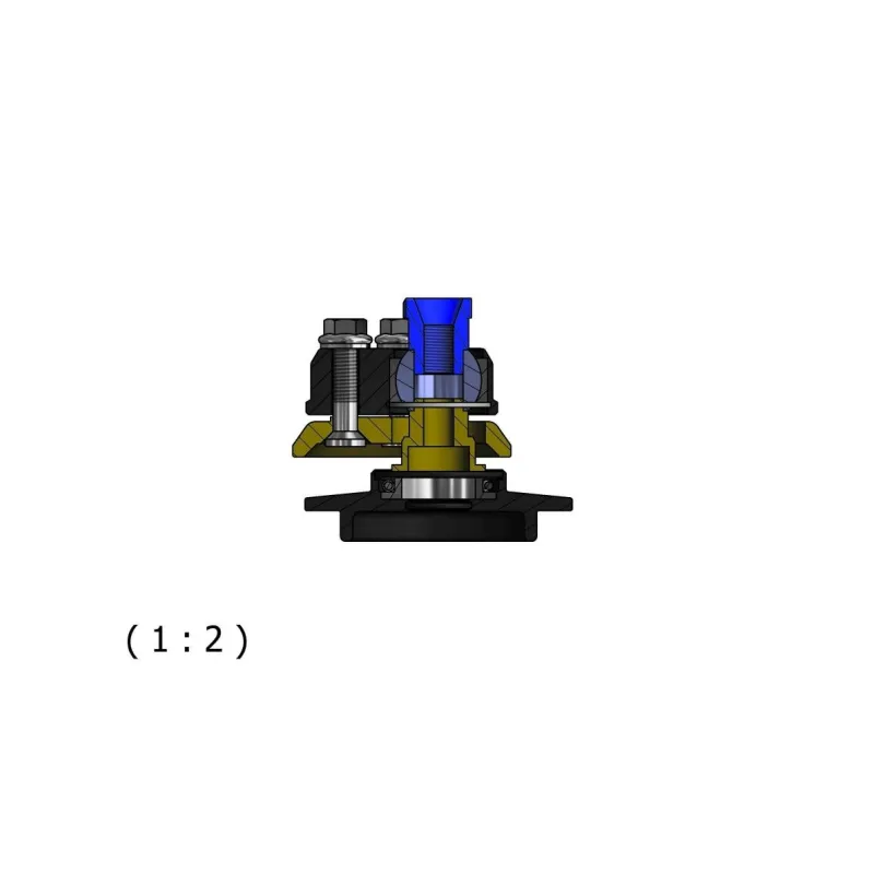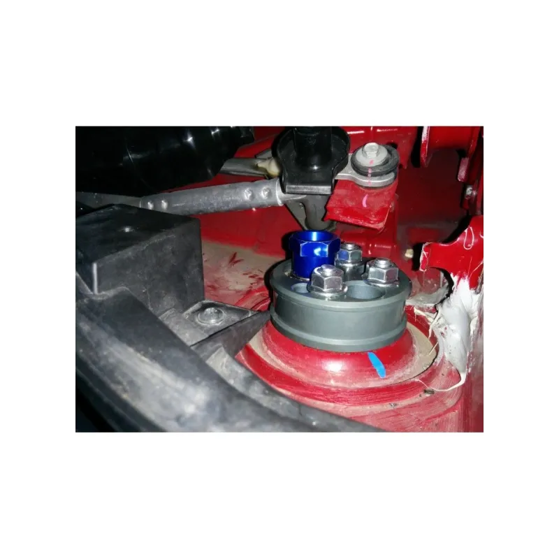 The top mount is interposed between the bumper and the dome of the body. In order to improve steering precision and the structural strength of the system, in particular in case of rigid structure, it is recommended to replace this one with a particular motorsport derived. The improvement consists in replacing the rubber with a ball joint uniball. Besides increasing the precision of the steering system on uniball allows a better functioning of the spring-damper.Our kit also allows the adjustment of the caster and camber of up to about -3°: the increase of this angle allows to obtain the maximum tread of the tire to the ground during a curve challenging. The kit includes: spring plate, eccentric adjustment, uniball eccentric support, uniball motorsport, ball bearing noise reduction and a special nut. All parts are made of ERGAL made from billet