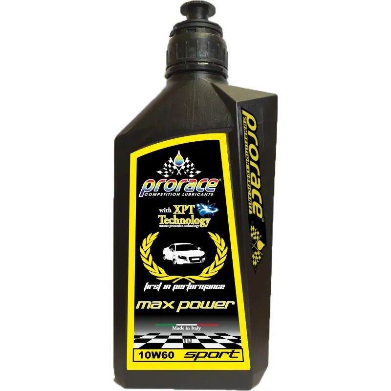 MOTOR OIL MAX POWER MOTO 10W60 100% SYNT SPORT è un lubrificante formulato con tecnologia sintetica per motori di modernissima concezione a quattro tempi di moto da strada (dotati e non di cambi integrati ) quad, cross e scooter ad utilizzo misto stradale e pista. Soddisfa la nuova specifica  JASO MA 2  per elevare il coefficiente di attrito in presenza di frizioni a bagno d’olio, consentendo di ridurre al minimo gli slittamenti della frizione.