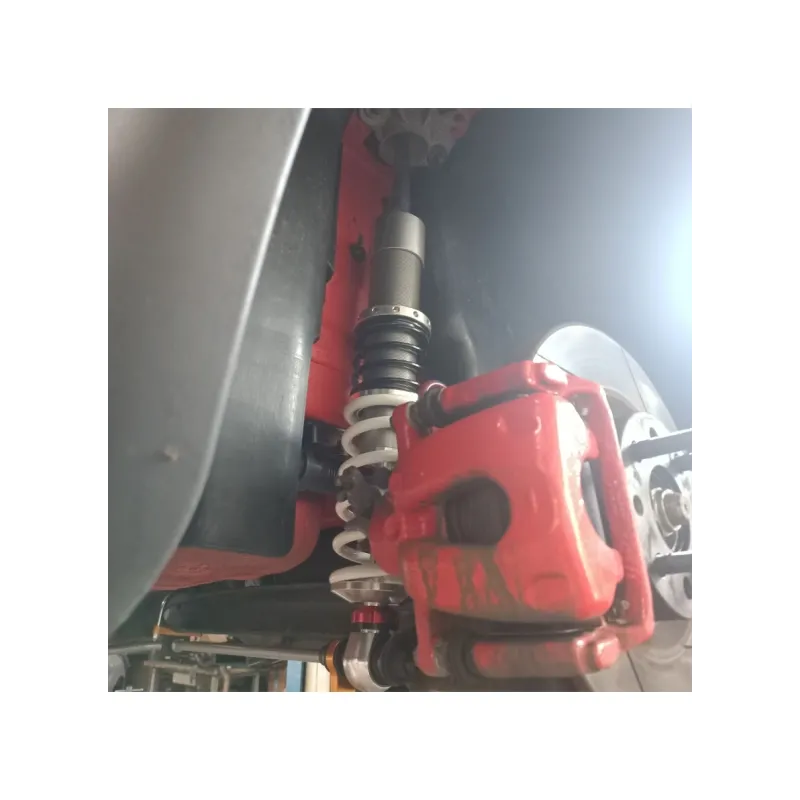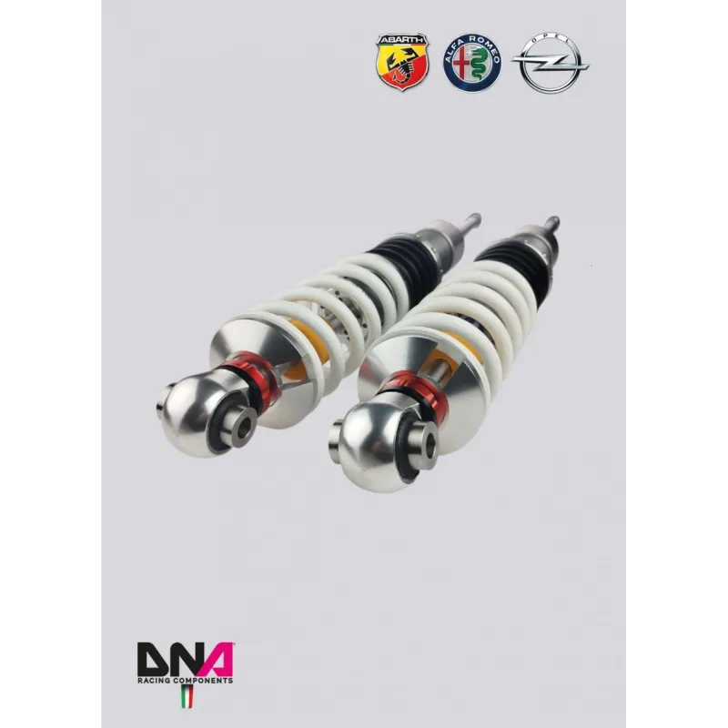 Coil over spring both front (70N/mm+4,5N/mm helper spring) and rear on the axle (60N/mm+4,5N/mm helper spring) with competition spring of an internal diameter of 60mm