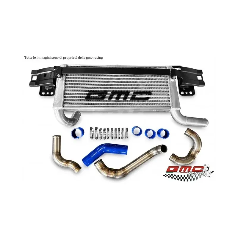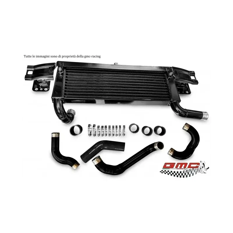 Thanks to the modified bumper crossbar that you will find in the kit, the intercooler kit for Abarth 500 can replace the original. However, few modifications to the lower bumper crossbar are necessary. If your car is equipped with a xenon installation, then you will need either to move the xenon tray or to change the xenon installation and switch to halogen. Our intercooler combines excellent materials that guarantee the durability of the product, and the experience and hard work of our team. Thanks to the innovative design of our intercooler, the space for the internal airflow is greater than that of other products on the market, allowing the car to perform better. The intercooler is entirely made of aluminum and can replace the original without the need for any structural modification. We have personally tested the intercooler on racetracks to guarantee its efficiency, functionality, and the benefits it can bring to the car's performance. So many advantages in just one piece with the GMC quality at a little price. If you send us your original bumper crossbar when ordering your intercooler, you will receive a discount of 80€.