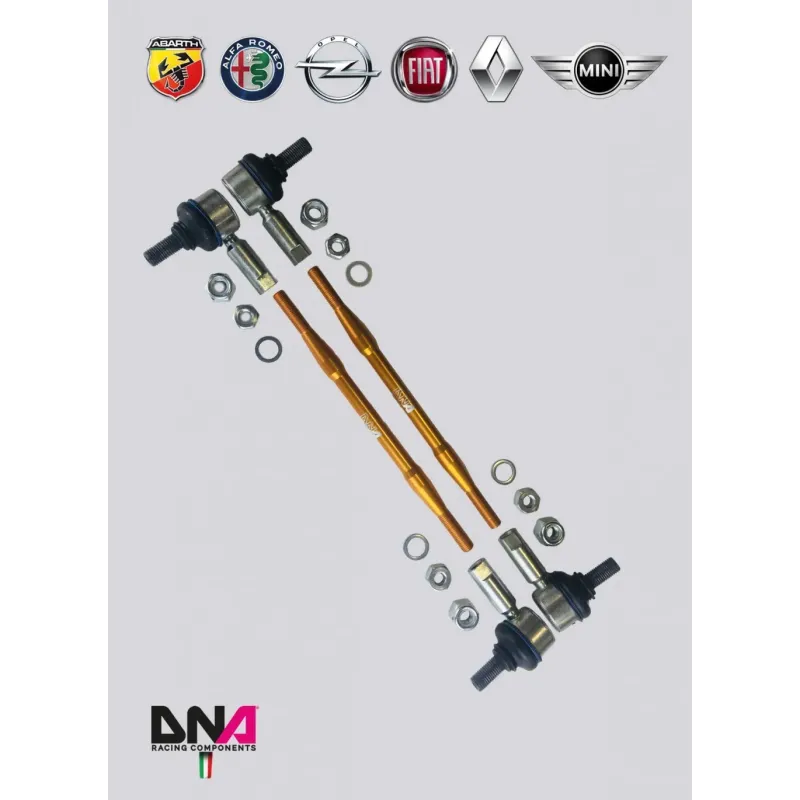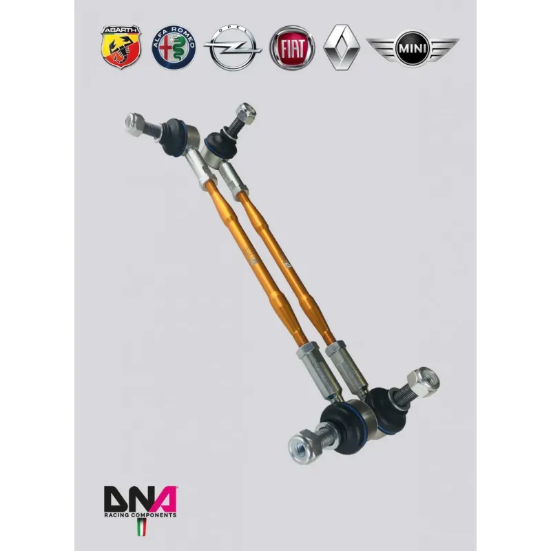 This type of tie rods allows you to transmit and sustain higher loads with greater precision anf to adjust the length of them for a perfect angular position of the torsion bar. Ideal for increased sway-roll bar and for fast road and racing, are constituted by two precision motorsport rose joint with dirt seals and gold ERGAL anodized body.