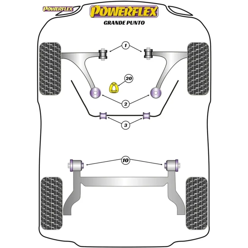 N.B.: In questo pacchetto sono incluse le seguenti parti: PFF80-1101Boccola anteriore braccio anteriore, PFF80-1102Boccola posteriore braccio anteriore, PFR80-1110 Boccola di montaggio trave posteriore, PFF80-1120 Inserto supporto motore posteriore inferiore. Questo pacchetto di movimentazione contiene una selezione di parti da un elenco completo di veicoli, fare clic qui per vedere più parti disponibili.Included within this pack are the following parts: