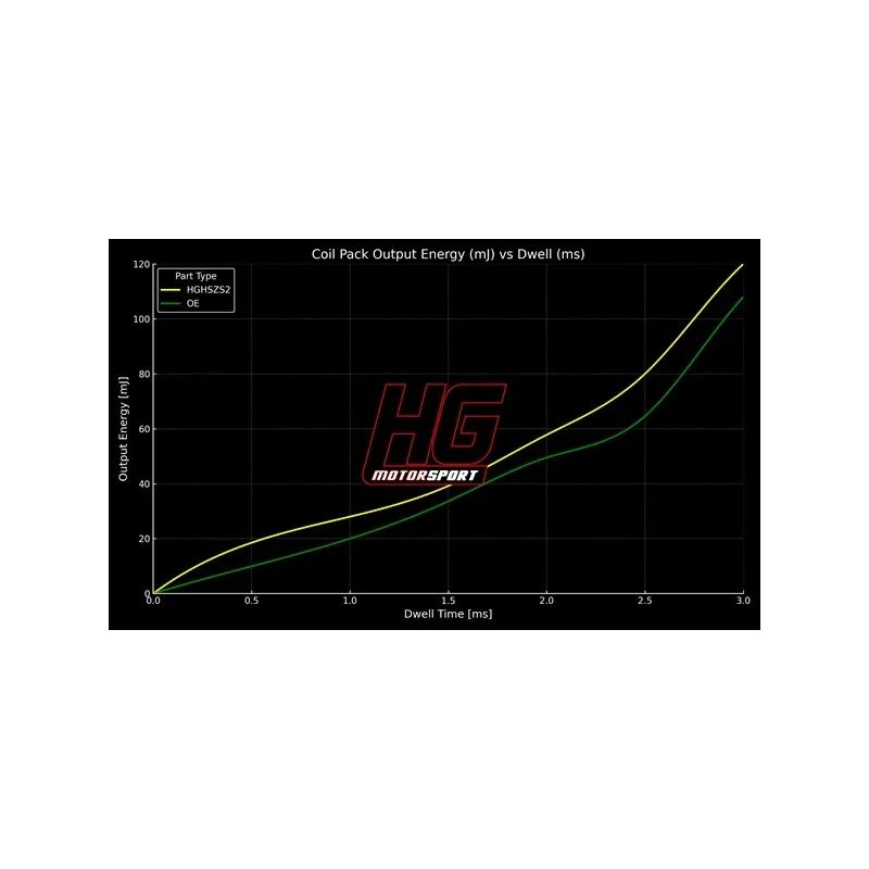 - At 3.0 ms: HG-Motorsport ignition coils deliver almost 25% more energy, a key factor at high speeds and in high-performance engines.