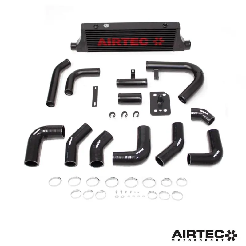 Replaces very restrictive twin intercooler setup and lengthily pipe-work, for Airtec’s high flow 60mm core intercooler and shortened alloy pipe kit, we keep fast Turbo spool up by using 50mm pipe-work into the turbo and 60mm out of the turbo to help match the throttle body, this combination gives fast turbo spool up and maximum power output
