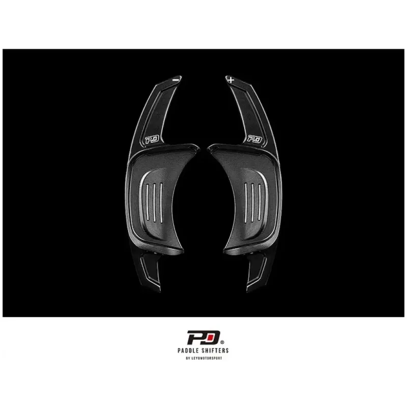 Set Leyo PD Paddle estensioni palette originali DSG specifiche per volanti VW Golf mk7 GTI/R realizzate tramite CNC con alluminio billet 6061, totalmente ergonomiche e Plug & Play, senza utilizzo di adesivi che potrebbero rovinare il paddle originale, applicate direttamente sopra e strette tramite brugola.