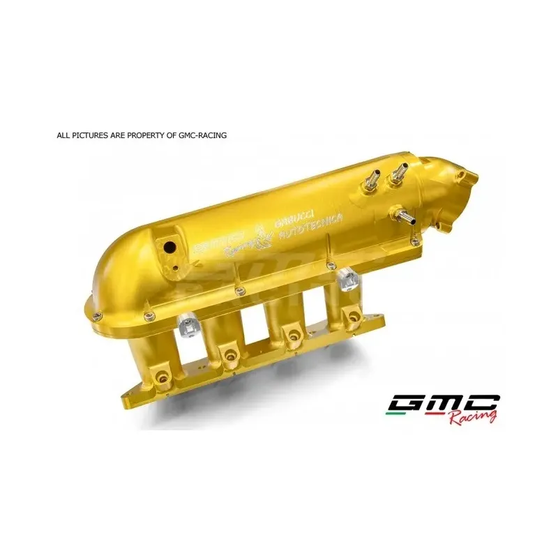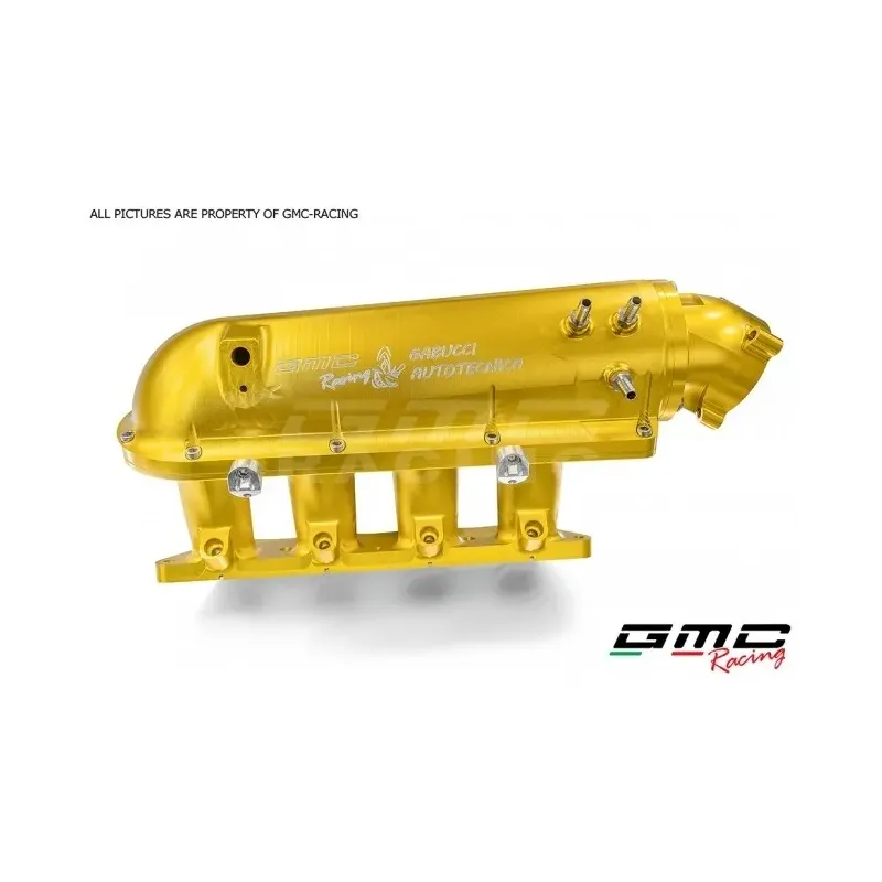 Collettore di aspirazione per motori 1.4 T-Jet Multiair Abarth, Alfa, Fiat e Lancia. Questo componente è realizzato interamente in CNC, ricavato dal pieno da un blocco di alluminio e non presenta quindi alcuna saldatura o giunzione che potrebbero intaccarne la superficie e la resistenza. Un collettore leggero, dalla qualità e fattura eccellente, che garantisce prestazioni notevoli. Il progetto è nato dalla lunga esperienza di Gabucci Autotecnica nel campo racing ed è stato specificatamente pensato per garantire ai clienti potenze elevate abbinata a affidabilità e resistenza. Il design è poi passato a noi della GMC per la realizzazione con i nostri macchinari CNC.
