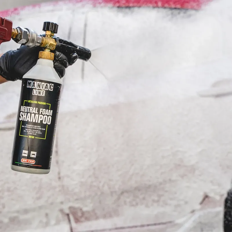 assicurarsi che la superficie sia fredda e che l’auto sia all’ombra. In caso di sporco fortemente ancorato è consigliato l’uso di “Foam Gun Prewash”. In fase di prelavaggio, utilizzare il prodotto per favorire la rimozione di sporco grossolano ed evitare la creazione di micrograffi. È consigliato lavare il veicolo ogni una o due settimane.