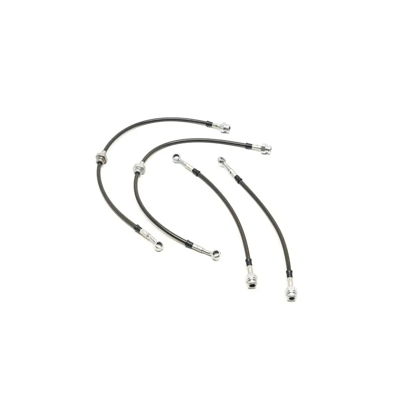 Kit composto da 2 tubi freno ANTERIORI e 2 POSTERIORI con interno in nylon, esterno in treccia inox rivestita.
