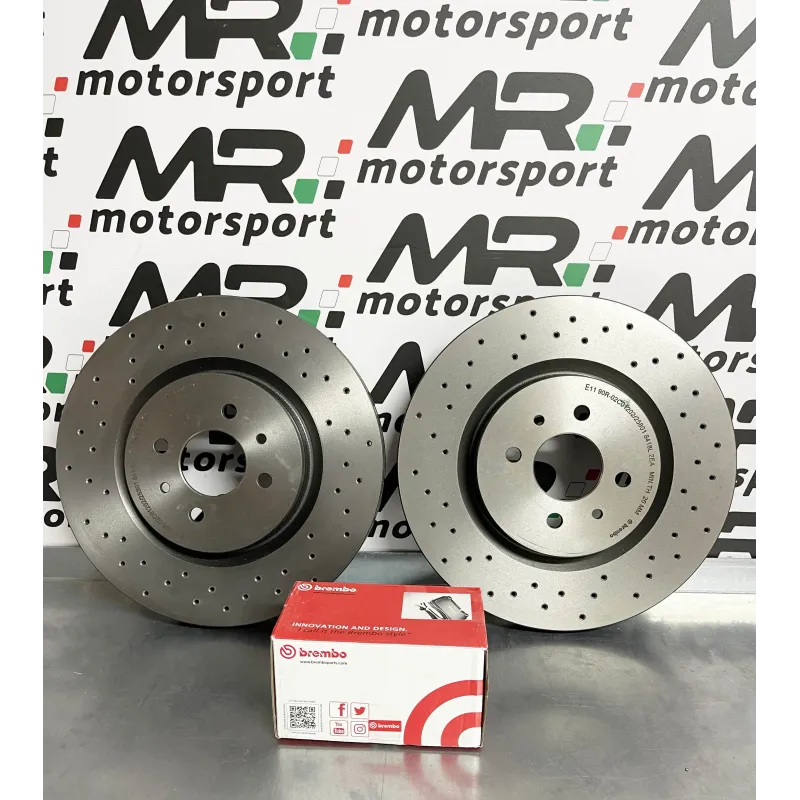 Coppia di dischi forati BREMBO da 305 mm per impianto Brembo per Abarth 500/595 con pastiglie Brembo originali.
