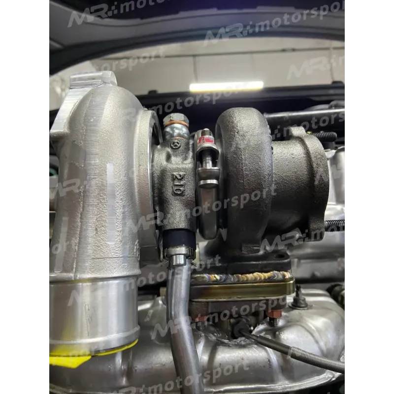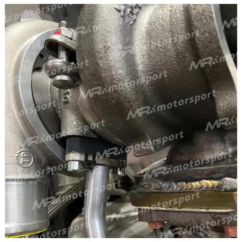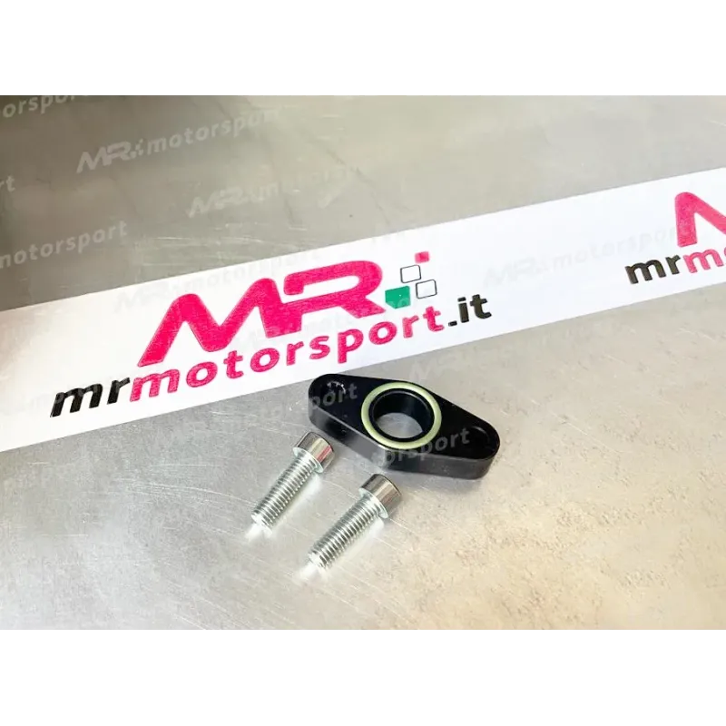 Distanziale ritorno olio ricavato dal pieno a Cnc anodizzato nero da utilizzare per montare la turbina TD04-GBC con il tubo originale della GARRET 1446
