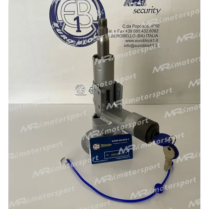 Euro Block 1 è l'antifurto meccanico per ogni tipo di auto. L'utilizzo di pistoni sagomati, prodotti in acciaio temperato e nichelati con soluzioni chimiche, permette al nostro bloccasterzo una maggiore resistenza. L'antifurto, brevettato e garantito, consente inoltre un rapido inserimento e disinserimento grazie a particolari ricerche sviluppate sul prodotto.