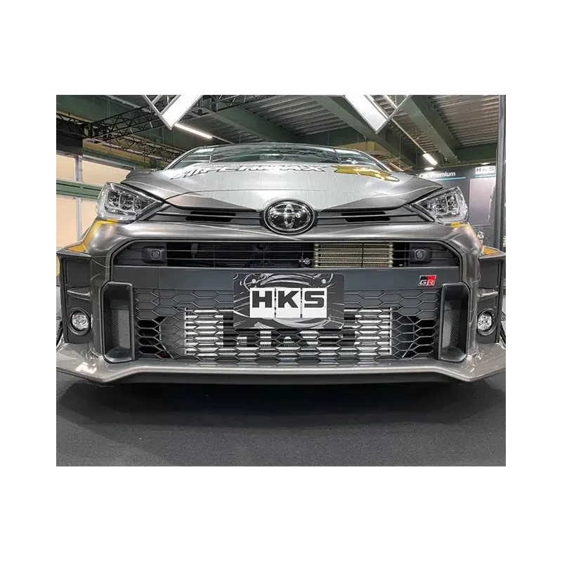 Intercooler frontale HKS specifico per Toyota Yaris GR, prestazioni dichiarate come dai grafici in foto.