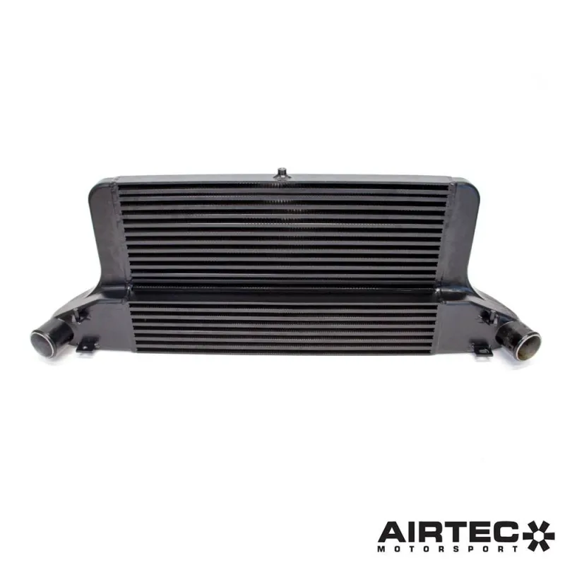 Intercooler maggiorato "Stage 3" Airtec specifico per Ford Fiesta ST mk7, installazione Plug & Play al posto dell' originale nonostante le sue dimensioni notevoli. Questo componente permette ottimi aumenti in ambito prestazionale grazie alla sua portata nettamente maggiorata rispetto l' intercooler di serie visto la vasta area della sua massa radiante che si estende per tutta la grandezza della presa d' aria del paraurti anteriore. Rispetto allo "Stage 2" è stato aumentato in spessore, con una massa radiante da 85mm nella parte inferiore e 40mm in quella superiore per adattarsi al meglio vicino la traversa dell' auto.