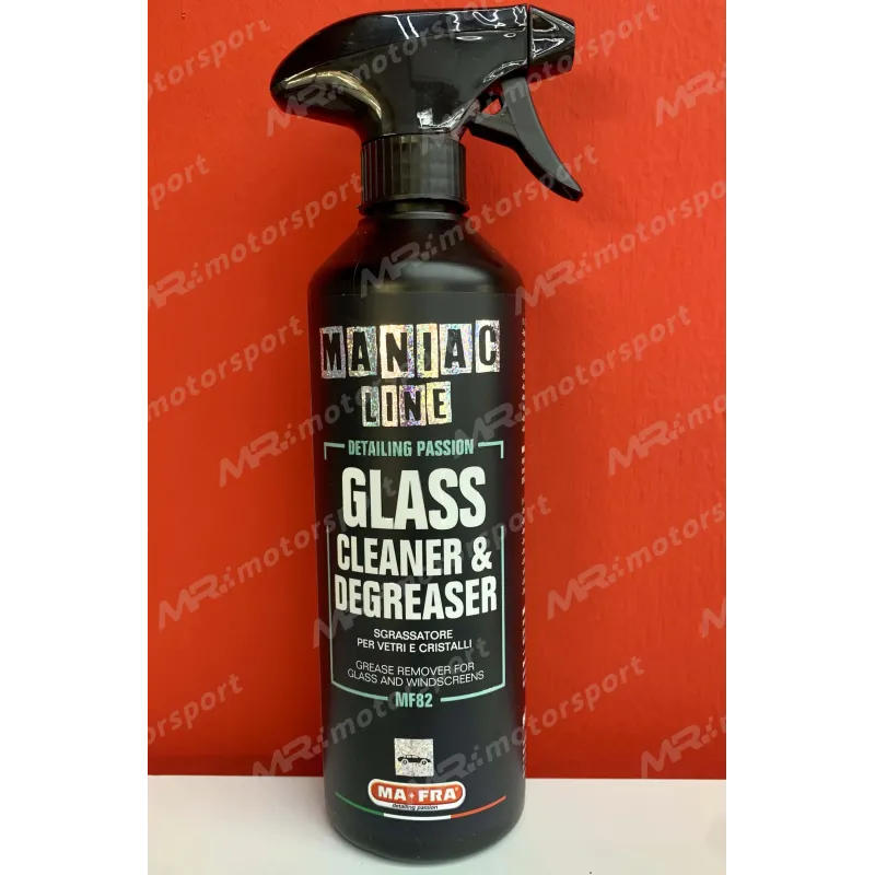 Glass Cleaner & Degreaser della Maniac Line di Mafra è uno sgrassatore per vetri e cristalli che grazie alla Zero Streaks Technology™ si asciuga in fretta senza lasciare aloni o macchie.