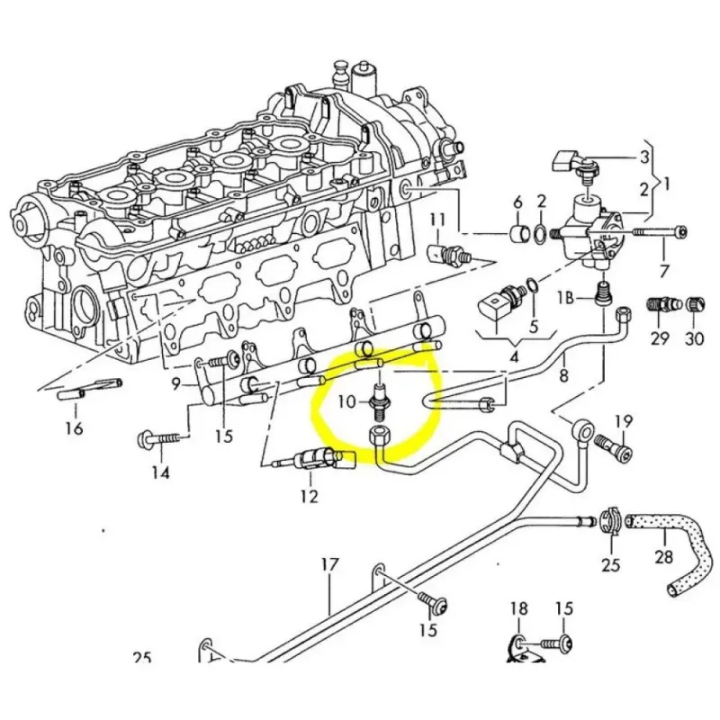 I motori TFSI da 2,0 litri che funzionano con più di 300 CV devono cambiare la pompa del carburante ad alta pressione insieme a questa valvola di aggiornamento. Altrimenti a tutto gas il motore potrebbe funzionare troppo magro. Un funzionamento troppo magro può causare guasti al motore!